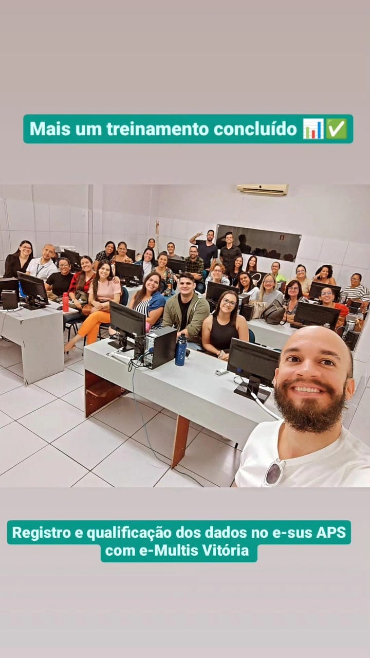 Treinamentos periódicos em saúde digital alcançaram Enfermeiras, Médicos, ACS, ACE, dentistas, recepcionistas e residentes multiprofissionais.